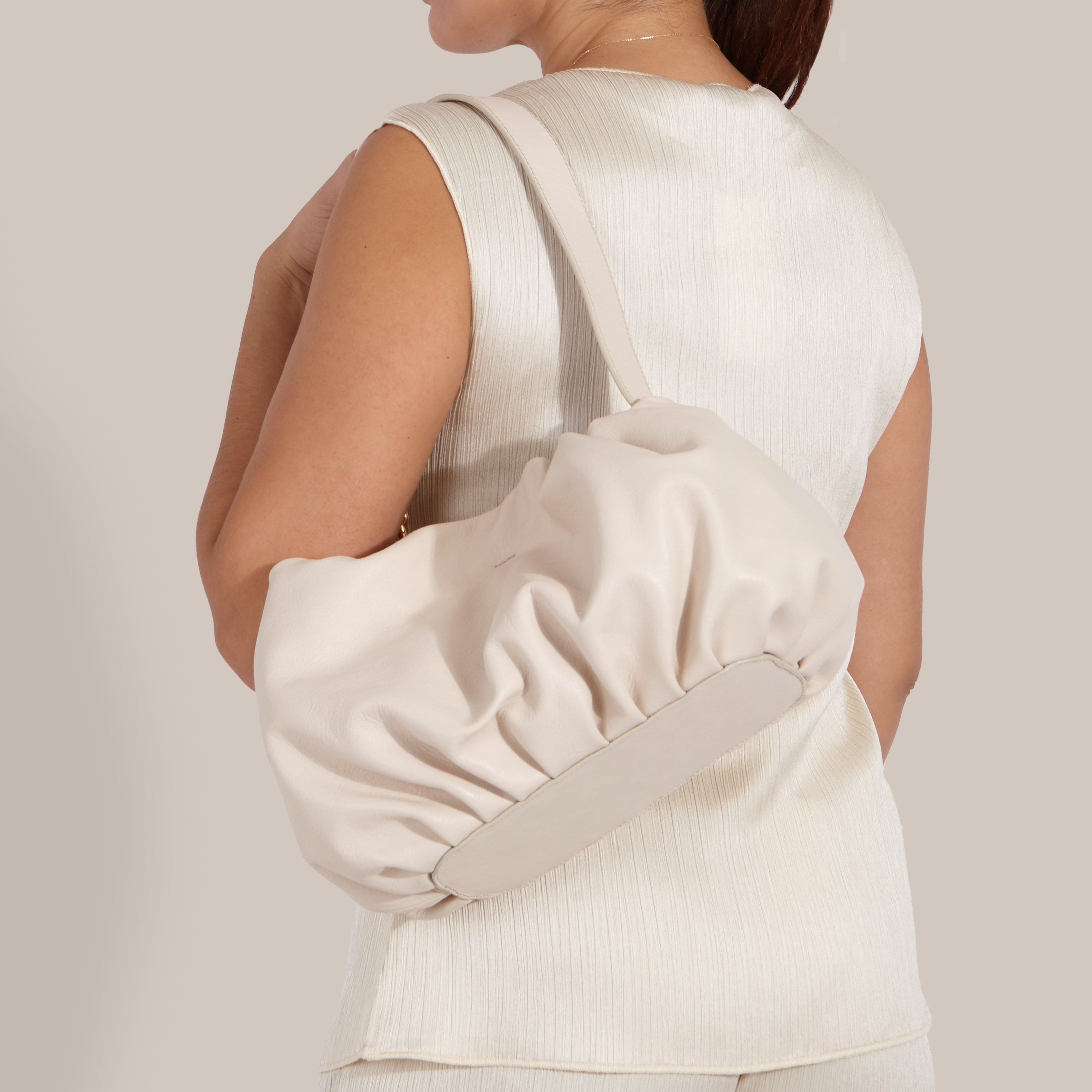 With its soft, unstructured silhouette, it embraces a relaxed aesthetic without compromising on elegance. Its natural drape and supple leather make it the perfect everyday companion, striking a balance between functionality and sophistication.