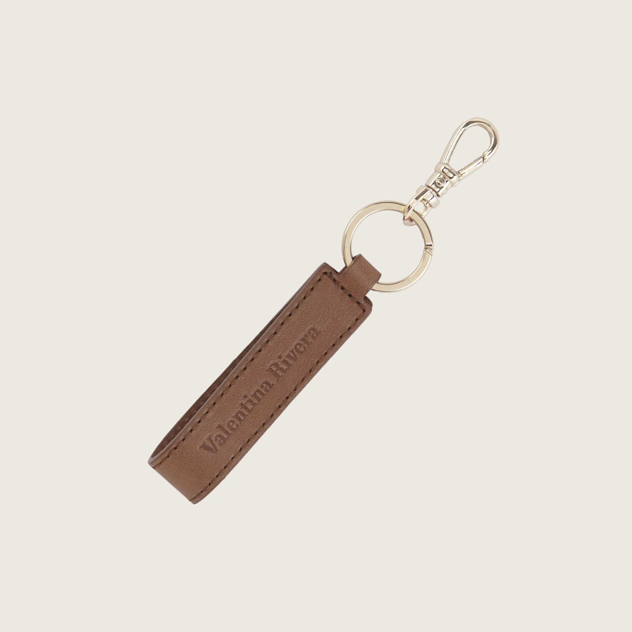 The Ines Keyring is crafted from cowhide leather, offering a soft, organic texture with a unique character. Finished with gold-tone hardware —a sleek ring and clasp— it adds a subtle touch of shine, making it the perfect detail to carry with you everywhere.