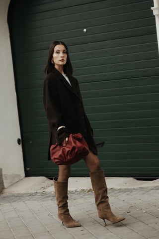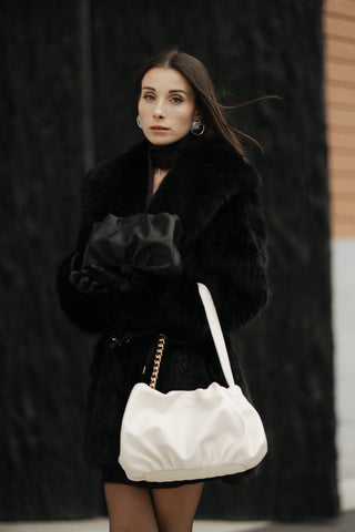 Limpia tu bolso con un paño suave y seco. Cuando no lo uses, guárdalo en su funda protectora, alejado de fuentes de luz y humedad, para conservar su forma y textura intactas.